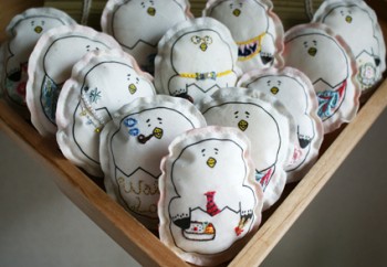 ウミネコのタマゴバッジは梶川美輪子さんの刺繍です。